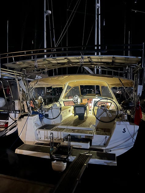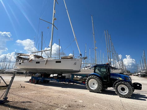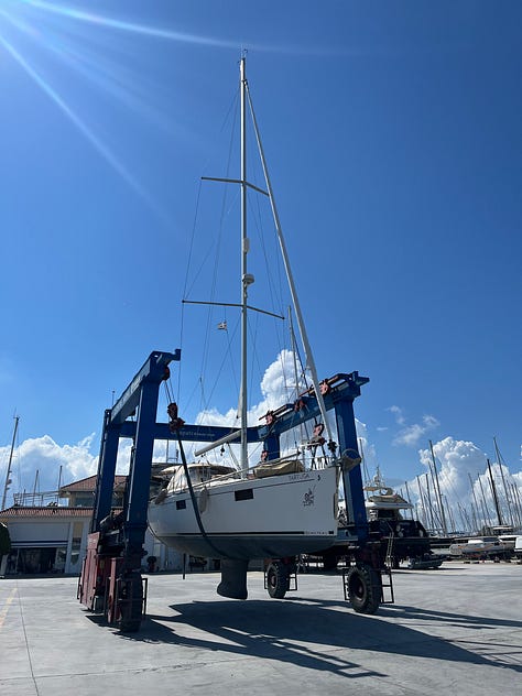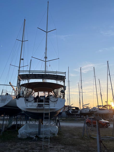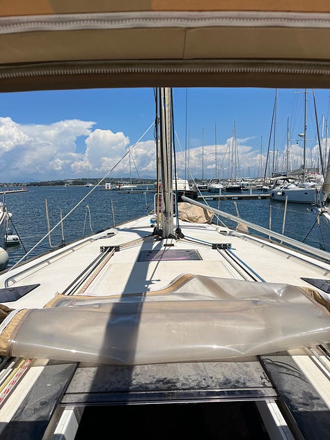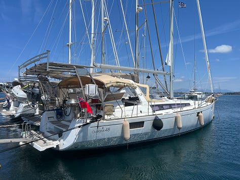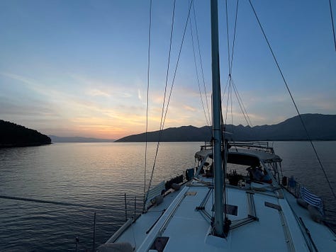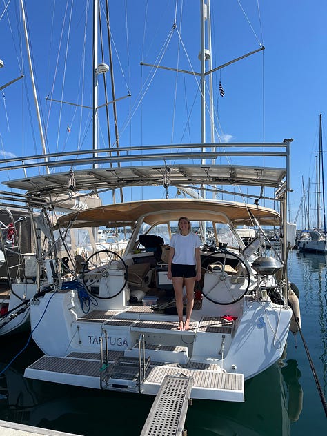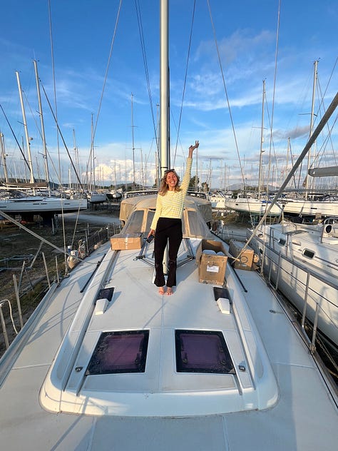Miraculously, we made it to Preveza with all our luggage, so rewarded ourselves with a Mythos in the first taverna we came across. Let me tell you: it rly does hit different when you know you don’t have to fly home in a week(!). We spent that first night in a B&B - me madly trying to finish a work deadline and Charlie frantically trying to fill in various complicated forms in before we were due to launch the boat the following morning. (FYI for all you sailing novices out there, launching just means putting the boat in the water).