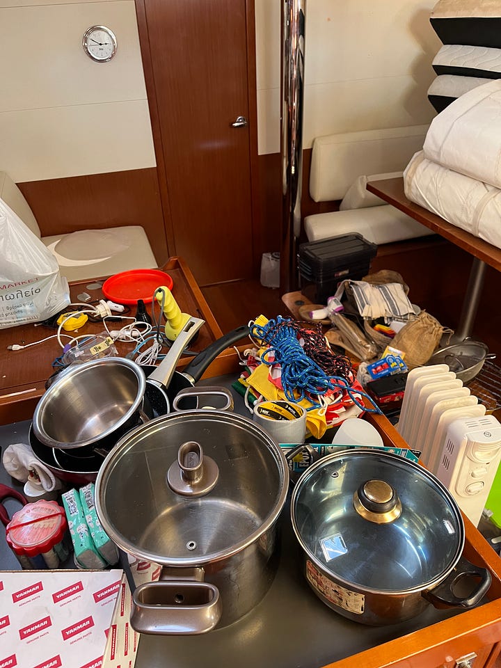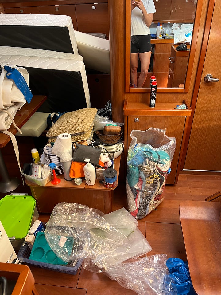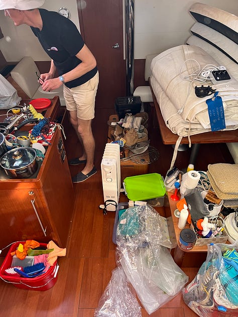 Then there was all the STUFF. I thought we’d be moving into an empty shell - but the Turtle was full to brimming with the previous owner’s gubbins. Half empty bottles of bleach, books, pot noodles, old duvet covers, blankets, tins of tuna, boxes of miscellaneous string, broken phone chargers: every cupboard we opened revealed more of it. There were some cracking things too: the collection of goggles, the sailing almanacs, the specialist boat cleaning products (Chazzle got v excited about these), the paddle board - all of which, if we had to buy new, would have set us back a hefty wad of cash. Hmm maybe that bottle of bleach was actually half full.